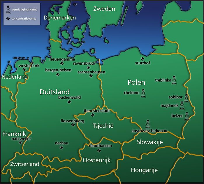 Er ontstonden concentratiekampen in Duitsland en in alle landen onder de Duitse heerschappij.